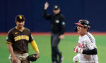 [OSEN=지형준 기자] 18일 서울 고척스카이돔에서 ‘메이저리그 월드투어 서울 시리즈 2024’ 샌디에이고 파드리스와 LG 트윈스의 연습경기가 진행됐다.2회초 1사 2루에서 LG 임찬규가 샌디에이고 김하성에 선제 투런포를 허용하며
