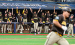 [OSEN=지형준 기자] 18일 서울 고척스카이돔에서 ‘메이저리그 월드투어 서울 시리즈 2024’ 샌디에이고 파드리스와 LG 트윈스의 연습경기가 진행됐다.2회초 1사 2루에서 샌디에이고 김하성이 선제 투런포를 날리자 더그아웃의 동