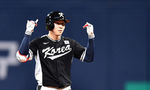 [OSEN=고척, 지형준 기자] 18일 서울 고척스카이돔에서 ‘메이저리그 월드투어 서울 시리즈 2024’ LA 다저스와 팀 코리아의 경기가 열렸다.4회초 팀 코리아 박성한이 2루타를 날리고 2루에 안착해 기뻐하고 있다. 2024.03.18 / jpnews@osen.