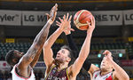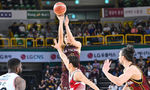 [OSEN=창원, 이석우 기자] 19일 창원 체육관에서 2023-2024 정관장 프로농구 창원 LG와 안양 정관장의 경기가 열렸다. 창원 LG 아셈 마레이가 안양 정관장 자밀 윌슨, 이종현의 마크를 피해 골밑슛을 시도하고 있다. 2024.03.19 / foto0307@ose