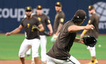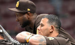 [OSEN=고척, 이대선 기자] 19일 서울 고척스카이돔에서 ‘메이저리그 월드투어 서울 시리즈 2024’ 샌디에이고 파드리스 공식 훈련이 진행됐다.샌디에이고 파드리스 매니 마차도와 주릭슨 프로파가 동료들의 훈련을 바라보고 있