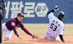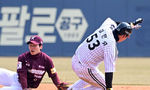 [OSEN=잠실, 지형준 기자] 19일 서울 잠실야구장에서 ‘2024 신한 SOL Bank KBO리그’ 시범경기 LG 트윈스와 키움 히어로즈의 경기가 열렸다.5회말 LG 김민수가 키움 김혜성에 태그아웃 당하며 2루 도루에 실패하고 있다. 2024.03.19 /jpnews@o