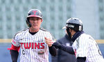 [OSEN=잠실, 지형준 기자] 19일 서울 잠실야구장에서 ‘2024 신한 SOL Bank KBO리그’ 시범경기 LG 트윈스와 키움 히어로즈의 경기가 열렸다.3회말 1사 1,3루에서 LG 문성주가 1타점 적시타를 날리며 세리머니를 하고 있다. 2024.03.19 /jpnews@o