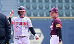[OSEN=잠실, 지형준 기자] 19일 서울 잠실야구장에서 ‘2024 신한 SOL Bank KBO리그’ 시범경기 LG 트윈스와 키움 히어로즈의 경기가 열렸다.2회말 무사 1,3루에서 LG 구본혁이 1타점 적시타를 날리며 기뻐하고 있다. 2024.03.19 /jpnews@osen.co.k