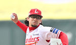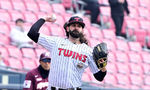 [OSEN=잠실, 지형준 기자] 19일 서울 잠실야구장에서 ‘2024 신한 SOL Bank KBO리그’ 시범경기 LG 트윈스와 키움 히어로즈의 경기가 열렸다.3회초 1사에서 LG 켈리가 키움 김혜성의 투수 앞 땅볼에 역동작으로 점프 송구를 시도하고 있