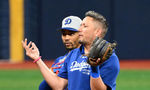 [OSEN=고척, 이대선 기자] 19일 서울 고척스카이돔에서 ‘메이저리그 월드투어 서울 시리즈 2024’ LA 다저스 공식 훈련이 진행됐다.LA 다저스 무키 베츠와 미겔 로하스가 이야기를 나누고 있다. 2024.03.19 /sunday@osen.co.kr