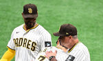 [OSEN=고척돔, 지형준 기자] 20일 오후 서울 고척스카이돔에서 ‘MLB 월드투어 서울 시리즈’ LA 다저스와 샌디에이고 파드리스의 개막 경기가 열렸다. 경기에 앞서 샌디에이고 김하성이 그라운드에 들어서며 마이크 실트 감독과