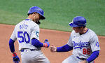 [OSEN=고척돔, 지형준 기자] 20일 오후 서울 고척스카이돔에서 ‘MLB 월드투어 서울 시리즈’ LA 다저스와 샌디에이고 파드리스의 경기가 열렸다. 8회초 1사 1, 2루 무키 베츠가 1타점 적시타를 친 후 환호하고 있다. 2024.03.20 /jpnews@o