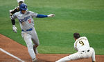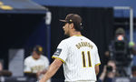 [OSEN=고척돔, 지형준 기자] 20일 오후 서울 고척스카이돔에서 ‘MLB 월드투어 서울 시리즈’ LA 다저스와 샌디에이고 파드리스의 경기가 열렸다. 샌디에이고 유격수 김하성이 LA 4회 럭스의 내야땅볼을 잡아 송구 아웃시키고 들어