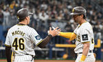 [OSEN=고척돔, 지형준 기자] 20일 오후 서울 고척스카이돔에서 ‘MLB 월드투어 서울 시리즈’ LA 다저스와 샌디에이고 파드리스의 개막 경기가 열렸다. 7회 말 2사 상황에서 샌디에이고 파드리스 웨이드가 중전 안타를 치고 같은