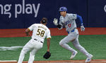 [OSEN=고척돔, 지형준 기자] 20일 오후 서울 고척스카이돔에서 ‘MLB 월드투어 서울 시리즈’ LA 다저스와 샌디에이고 파드리스의 개막 경기가 열렸다. 5회초 무사 1루에서 다저스 오타니가 3루 땅볼을 날리고 있다. 2024.03.20 /jpnews@