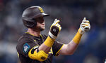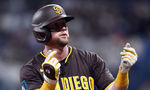 [OSEN=고척돔, 이대선 기자] 21일 오후 서울 고척스카이돔에서 ‘MLB 월드투어 서울 시리즈’ LA 다저스와 샌디에이고 파드리스의 경기가 열렸다.1회초 2사 2루에서 샌디에이고 웨이드가 1타점 우전 적시타를 날린 후 세리머니를