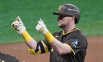 [OSEN=고척돔, 이대선 기자] 21일 오후 서울 고척스카이돔에서 ‘MLB 월드투어 서울 시리즈’ LA 다저스와 샌디에이고 파드리스의 경기가 열렸다.1회초 무사 1, 2루 샌디에이고 크로넨워스가 2타점 3루타를 친 후 환호하고 있다. 202