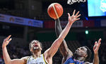 [OSEN=부산, 이석우 기자] 22일 부산 사직체육관에서 2023-2024 정관장 프로농구 부산 KCC와 창원 LG의 경기가 열렸다. 창원 LG 아셈 마레이가 부산 KCC 라건아를 피해 골밑슛을 노리고 있다. 2024.03.22 / foto0307@osen.co.kr