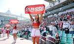 [OSEN=인천, 민경훈 기자] 23일 오후 인천 SSG랜더스필드에서 ‘2024 신한 SOL Bank KBO리그’ SSG 랜더스와 롯데 자이언츠의 시즌 개막전이 열렸다. SSG 야구팬들이 치어리더들과 함께 열띤 응원을 펼치고 있다. 2024.03.23 / rumi@osen.co.kr