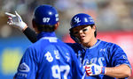 [OSEN=창원, 이석우 기자] 23일 창원 NC파크에서 2024 신한 SOL 뱅크 KBO 리그 NC 다이노스와 두산 베어스의 개막 경기가 열렸다. 두산 베어스 김대한이 8회초 2사 3루 양의지의 1타점 우중간 2루타때 득점을 올리고 기쁨을 나누고 있다. 2