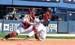 [OSEN=지형준 기자]] 23일 오후 서울 잠실야구장에서 ‘2024 신한 SOL Bank KBO리그’ LG 트윈스와 한화 이글스의 공식 개막전 경기가 열렸다.4회초 1사 만루에서 한화 김강민이 정은원의 2루땅볼에 LG 박동원에 포스아웃 당하고 있다. 202