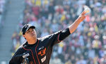 [OSEN=지형준 기자]] 23일 오후 서울 잠실야구장에서 ‘2024 신한 SOL Bank KBO리그’ LG 트윈스와 한화 이글스의 공식 개막전 경기가 열렸다.2회말 1사에서 한화 류현진이 LG 오지환에 볼넷을 허용하며 미소짓고 있다. 2024.03.23 /jpnews@osen.