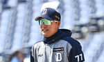 [OSEN=창원, 이석우 기자] 23일 창원 NC파크에서 2024 신한 SOL 뱅크 KBO 리그 NC 다이노스와 두산 베어스의 개막 경기가 열렸다. 두산 베어스 이승엽 감독이 선수들의 훈련을 보며 공을 치고 있다. 2024.03.23 / foto0307@osen.co.kr