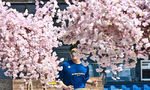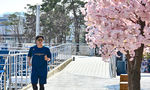 [OSEN=창원, 이석우 기자] 23일 창원 NC파크에서 2024 신한 SOL 뱅크 KBO 리그 NC 다이노스와 두산 베어스의 개막 경기가 열렸다. NC 다이노스 김시훈이 창원NC파크 외야에 설치된 벚꽃 사이를 달리며 몸을 풀고 있다. 2024.03.23 / foto0307@ose