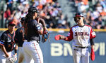 [OSEN=잠실, 지형준 기자] 24일 오후 서울 잠실야구장에서 ‘2024 신한 SOL Bank KBO리그’ LG 트윈스와 한화 이글스의 경기가 열렸다.6회말 수비를 마친 한화 페냐가 박수를 치고 있다. 2024.03.24 /jpnews@osen.co.kr