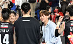 [OSEN=대전, 조은정 기자]정관장이 24일 대전 충무체육관에서 열린 도드람 2023~2024시즌 V리그 여자부 플레이오프 2차전에서 흥국생명에 세트스코어 3대1(25-19. 25-23. 20-25, 25-) 승리를 거뒀다.세븐틴 부승관이 정관장 승리를 함께 기뻐