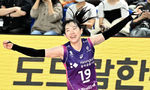 [OSEN=대전, 조은정 기자]24일 대천 충무체육관에서 도드람 2023~2024 V-리그 플레이오프 2차전 정관장과 흥국생명의 경기가 열렸다.3세트 흥국생명 김미연이 오픈 공격 성공에 기뻐하고 있다. 2024.03.24 / cej@osen.co.kr