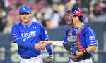 [OSEN=잠실, 최규한 기자] 27일 오후 서울 잠실야구장에서 열린 ‘2024 신한 SOL Bank KBO리그’ LG 트윈스와 삼성 라이온즈의 경기, 연장 12회 혈투 끝에 양 팀은 2-2 무승부로 마무리 지었다.경기를 마치고 양 팀 선수들이 팬들에게 인사