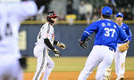 [OSEN=잠실, 최규한 기자] 27일 오후 서울 잠실야구장에서 ‘2024 신한 SOL Bank KBO리그’ LG 트윈스와 삼성 라이온즈의 경기가 열렸다.연장 12회말 1사 1, 2루 상황 LG 박동원 타석 때 2루 주자 오지환이 견제에 걸려 삼성 3루수 맥키넌에