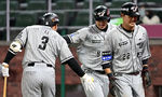 [OSEN=인천, 최규한 기자] 28일 오후 인천 SSG랜더스필드에서 ‘2024 신한 SOL Bank KBO리그’ SSG 랜더스와 한화 이글스의 경기가 열렸다.3회초 2사 1루 상황 한화 노시환이 선제 좌월 투런포를 날리고 홈을 밟은 뒤 안치홍-채은성과 기뻐