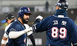 [OSEN=수원, 조은정 기자]28일 오후 수원KT위즈파크에서 ‘2024 신한 SOL Bank KBO리그’ KT 위즈와 두산 베어스의 경기가 열렸다.3회초 2사 두산 양석환이 달아나는 좌월 홈런을 날린 뒤 이승엽 감독의 환영을 받고 있다. 2024.03.28 / cej@os