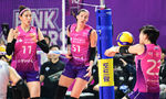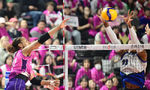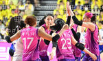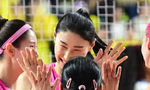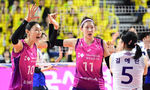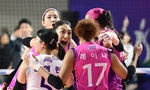 [OSEN=인천, 김성락 기자] 1일 오후 인천 부평구 인천삼산월드체육관에서 ‘도드람 2023~2024 V-리그’ 여자부 챔피언결정전 3차전 흥국생명과 현대건설의 경기가 열렸다.1세트 흥국생명 선수들이 득점에 성공한 뒤 기뻐하고 있다. 2