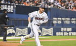 [OSEN=잠실, 박준형 기자] 9일 오후 서울 잠실구장에서 ‘2024 신한 SOL BANK KBO리그’ 두산 베어스와 한화 이글스의 경기가 진행됐다.이날 두산은 김동주를, 한화는 산체스를 선발투수로 내세웠다.6회말 2사 두산 박준영에게 솔로홈