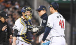[OSEN=잠실, 박준형 기자] 9일 오후 서울 잠실구장에서 ‘2024 신한 SOL BANK KBO리그’ 두산 베어스와 한화 이글스의 경기가 진행됐다.이날 두산은 김동주를, 한화는 산체스를 선발투수로 내세웠다.6회초 두산 양의지 포수가 마운드