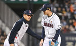 [OSEN=잠실, 박준형 기자] 9일 오후 서울 잠실구장에서 ‘2024 신한 SOL BANK KBO리그’ 두산 베어스와 한화 이글스의 경기가 진행됐다.이날 두산은 김동주를, 한화는 산체스를 선발투수로 내세웠다.6회초 두산 선발투수 김동주가 교체