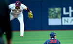 [OSEN=고척, 최규한 기자] 14일 오후 서울 고척스카이돔에서 ‘2024 신한 SOL Bank KBO리그’ 키움 히어로즈와 롯데 자이언츠의 경기가 열렸다.이날 홈팀 키움은 선발투수로 손현기, 방문팀 롯데는 나균안을 내세웠다.4회초 투구를 마