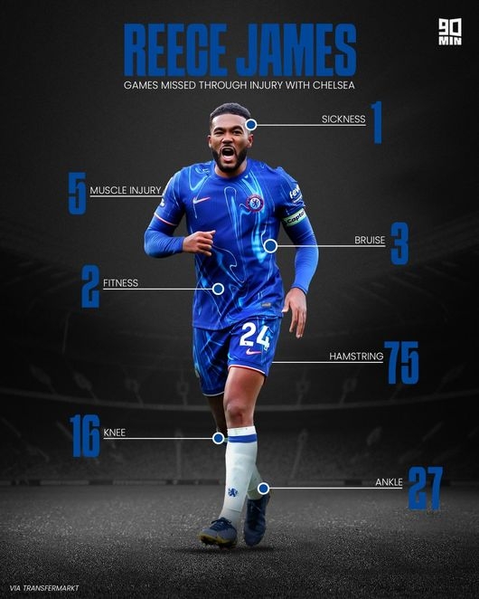 건강한 제임스는 역시 첼시의 에이스였다. 그는 최근 아스톤 빌라전에서 2025년 첼시 소속 50번째 경기를 치렀다. 이는 2021년 이후 단일 연도 최다 출전 기록이다. 디 애슬레틱은 "제임스의 커리어가 부상으로 얼마나 힘들었는지 생각해 보면 이는 엄청난 성과"라고 강조했다.