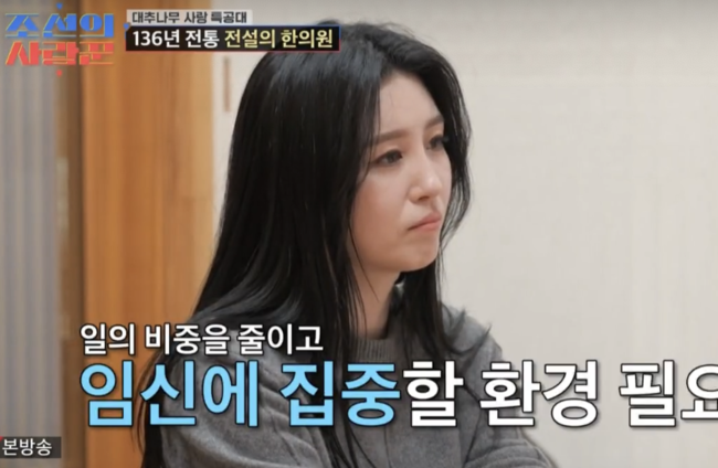 두 사람은 아이를 갖기 위해 노력한 지 1년 차라고 밝혔다. 자연 임신을 원하며 136년 전통의 한의원도 찾았다. 진맥 결과 “일을 너무 많이 하는 워커홀릭 체질이니 일을 줄이고 임신에 집중해야 한다”는 조언을 들었다.