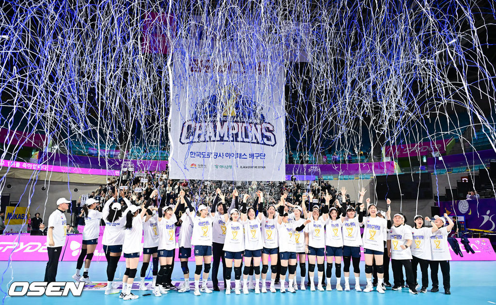 경기종료 후 한국도로공사 선수들이 시상식을 갖고 포즈를 취하고 있다. 2026.03.13 / soul1014@osen.co.kr