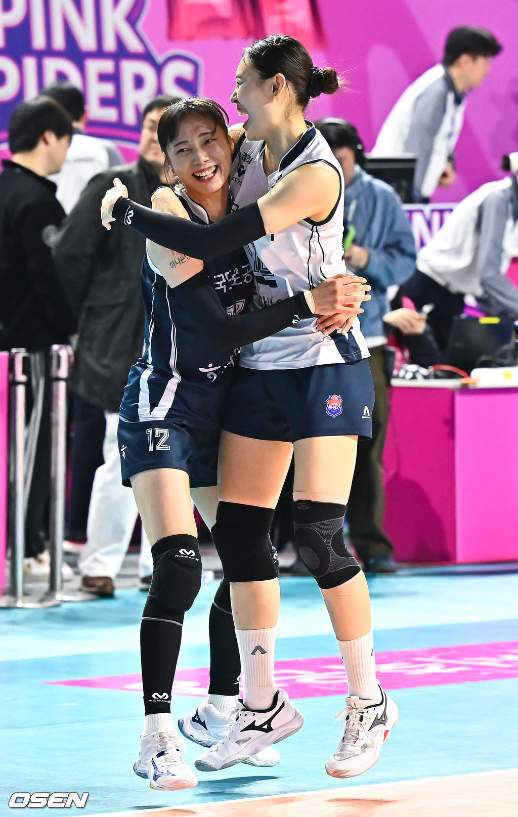 경기종료 후 한국도로공사 문정원과 배유나가 우승 기쁨을 나누고 있다. 2026.03.13 / soul1014@osen.co.kr