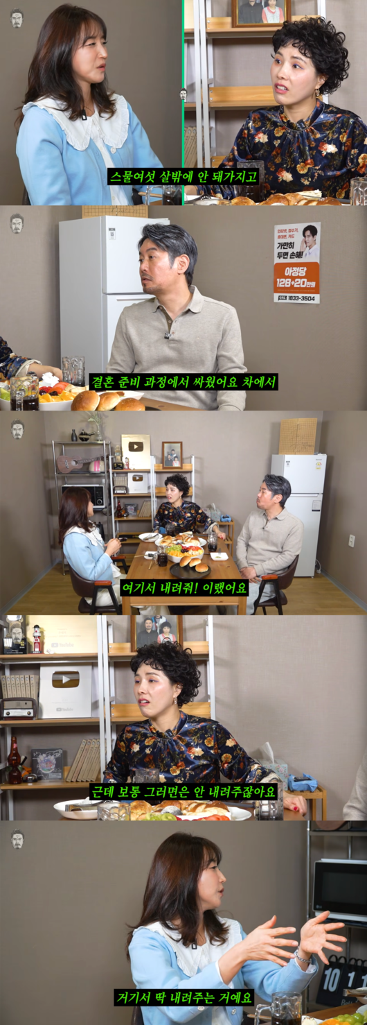 특히 지경선 씨는 “파혼할 뻔한 적이 있었다. 결혼날짜를 잡고, 준비하고 이러는 와중에 피곤한 일이 생기잖아요. 집에 가는 길이었다. 성수대교를 타고 가는데, 결혼 준비 과정에서 차에서 싸웠다”라고 고백했다.
