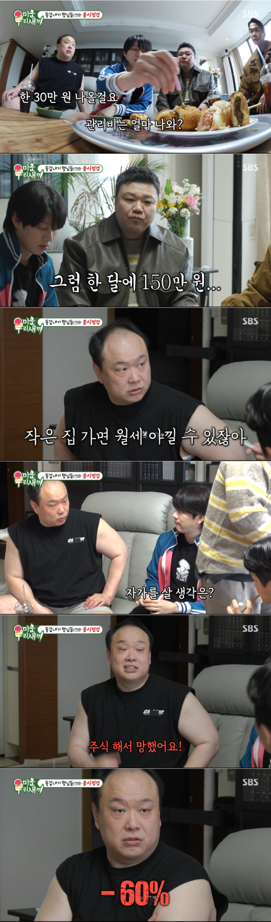 자가를 마련할 계획이 없느냐는 질문에 이호철은 “돈이 있어야지. 주식하다 망했어요”라며 주식 투자 실패 사실을 고백했다. 그는 전 재산을 모두 투자했지만 현재 수익률이 -60%라고 밝히며, “다시는 주식을 하지 않을 것”이라고 선언해 눈길을 끌었다.