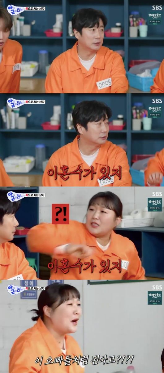 이수근은 이수지를 가만히 본 후 “이혼수가 있다”라고 말했고 이수지는 입을 틀어막은 후 “이 오빠들처럼 된다고?”라며 탁재훈, 이상민을 차례대로 번갈아보며 깜짝 놀랐다. 이상민은 “반지 던질 때부터 알아봤다”라고 거들었다.