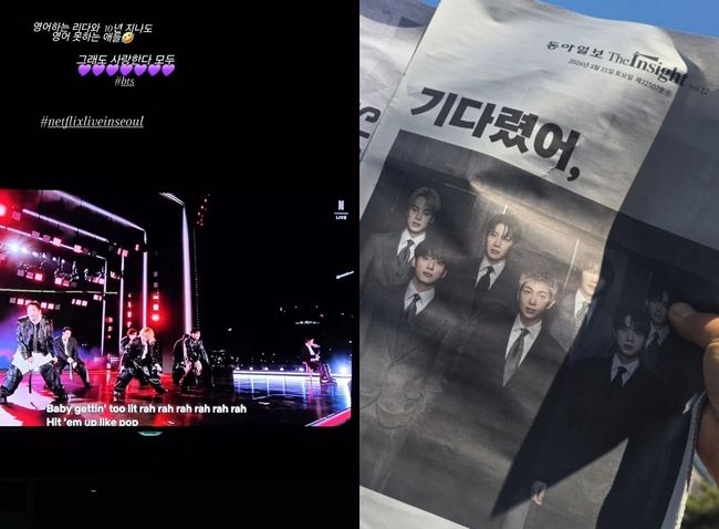 그는 "3년 9개월만에 새 앨범 'arirang'과 함께 광화문에서의 역사적인 comeback live 공연으로 돌아온 BTS. 군대가기 직전 부산에서의 콘서트는 몸은 신나는데 마음은 한없이 무거웠던 기억. 그보단 Las Vegas 콘 갔던건 내 인생에 젤 잘한 선택. 그때 받을줄 알았던 그래미 놓쳤는데도 서운할 틈도 없이 신나고 황홀했던. 그 와중에 RM의 멘트와 표정에서 느껴졌던 묘한 기운. 그 정체를 곧 알게되고 세상이 무너지는 것 같았지"라고 '군백기' 전을 회상했다.