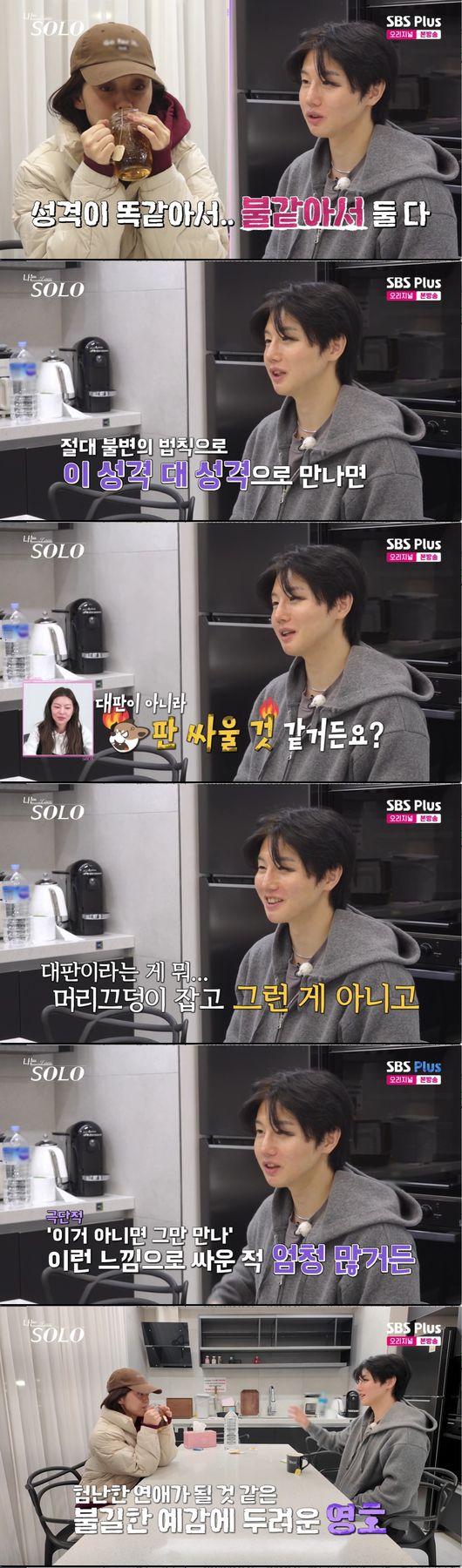 '나는 SOLO’ 30기 영호와 영숙이 연애 시작 전부터 서로의 강한 성격을 확인하며 팽팽한 설전을 벌였다.