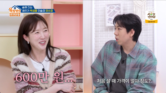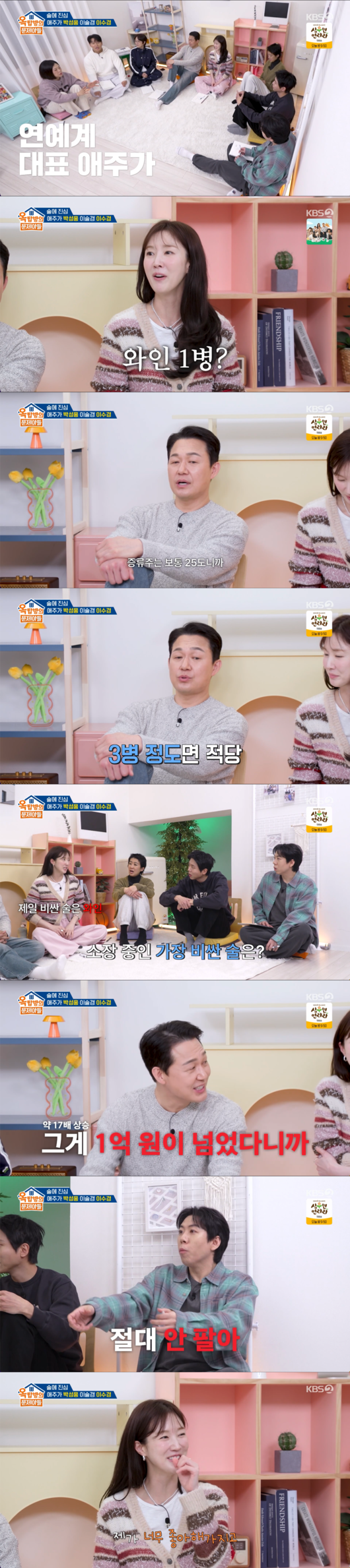 특히 화제가 된 것은 이수경이 보유한 고가의 와인. 박성웅이 “억대야”라고 운을 떼자 이수경은 “원래는 그 가격에 안 샀어. 600만 원”이라고 설명했다. 이에 박성웅이 “근데 그게 지금은 1억 원이 넘었다니까”라며 엄청난 가격을 공개했다.
