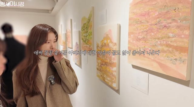 전시를 모두 감상한 뒤 마음에 안정을 되찾은 정시아는 "풍경을 동양화 기법으로 그리시는 분이라 힐링하고 차분해질거라 생각했는데 너무 예상치 못하게 오랜만에 아빠를 꺼내보는 시간도 됐고 가족에 대해서 다시한번 생각해볼수 있는 시간이었다"라고 소감을 밝혔다.