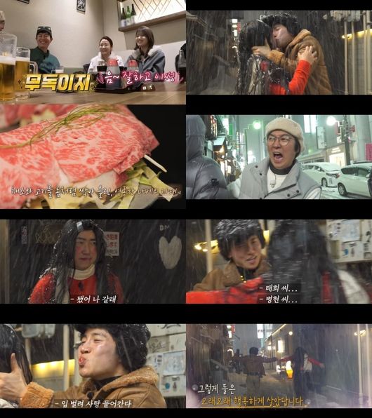 ‘환장’의 관람차 탑승 마친 뒤에는 장동민이 추천한 ‘나베 맛집’으로 갔다. 이곳에서 2세를 위해 금주-금연 중인 김준호는 “술 대신 물을 마시겠다”고 선언했다. 홍인규는 “이런 곳에서 술을 참다니 대단하다. 나중에 조카가 태어나면 ‘아빠가 이렇게 잘 참았다’고 얘기해”라고 ‘리스펙’을 보냈다. 푸짐하게 ‘나베’ 요리를 먹은 뒤, ‘독박즈’는 식사비 겸 ‘최종 독박자’를 뽑기 위한 게임에 들어갔다. 멤버들은 ‘사탕 키스’ 벌칙을 피하기 위해 그 어느 때보다 처절한 사투를 벌였다. 그 결과, ‘지니어스’ 장동민이 반전의 ‘최다 독박자’가 됐다. 4등을 한 유세윤은 장동민의 ‘키스 파트너’로 결정됐다. 직후 장동민은 ‘장태희’로 여장을 감행해 눈 오는 삿포로 거리에 나섰다. 잠시 뒤, 남친을 기다리는 장태희에게 ‘일본 불량배’ 분장을 한 유세윤이 다가왔고, 두 사람은 격렬(?)하게 ‘사탕 키스’를 했다. 두 사람의 역대급 열연에 시청자들은 “레전드급 명장면이다”, “두고두고 봐야 할 벌칙 짤이다”, “지니어스 장동민의 추락과 수모, 그리고 프로 정신! 대박이다” 등 뜨거운 반응을 보냈다. /seon@osen.co.kr