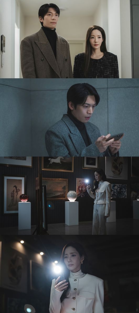 이런 가운데 공개된 사진 속에는 회장 김선애의 비밀 금고에 잠입한 한설아의 모습이 담겨 있다. 한설아가 금고의 곳곳을 카메라로 촬영하는 동안 차우석은 영상 속 금고 안에 보관된 작품들을 보며 경악해 그 규모를 짐작하게 한다. 특히 금고 안에는 화재로 소실된 것으로 알려진 그림들도 존재해 과연 한설아와 차우석이 김선애의 실체를 제대로 폭로할 수 있을지 궁금해진다.
