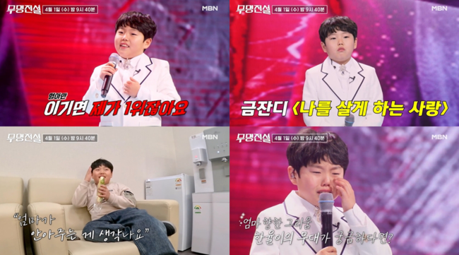 MBN 초대형 트롯 오디션 ‘무명전설-트롯 사내들의 서열전쟁’(이하 ‘무명전설’)이 본선 2차 ‘1대1 데스매치’를 앞두고 선공개 영상을 공개한 가운데, 김한율이 눈물을 흘리는 모습이 포착됐다.
